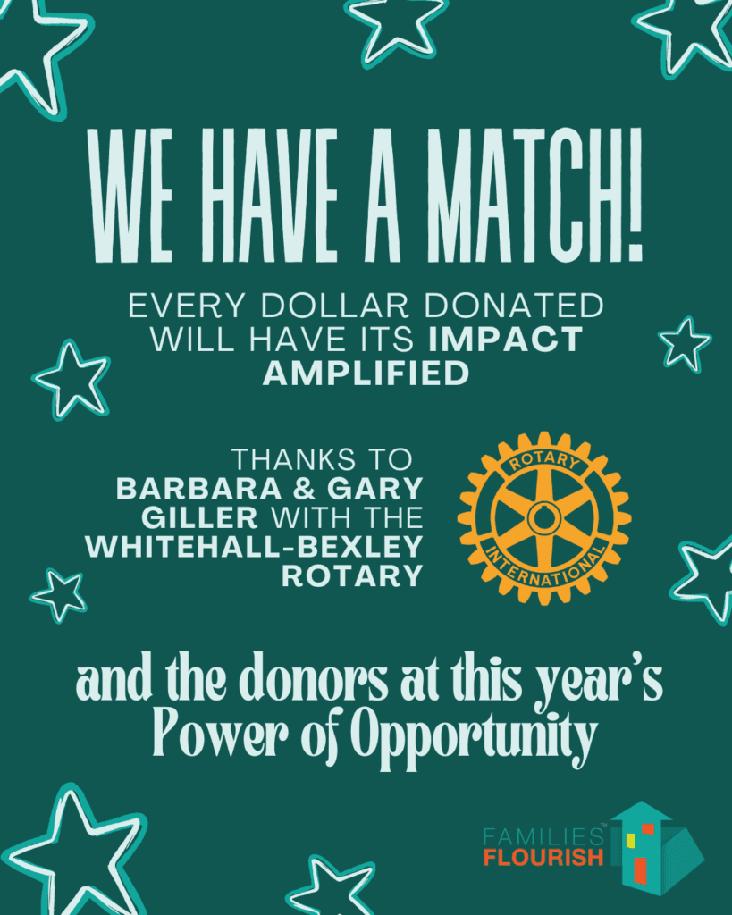 Thanks to our generous donors, your gift will be matched dollar for dollar, up to